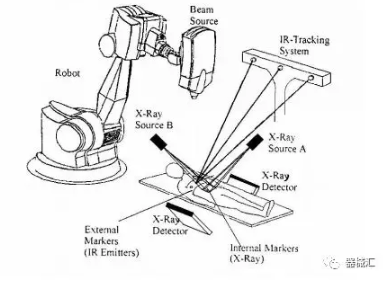 目前主要是賽博刀(Cyber knife)系統(tǒng)在使用這種方式,當(dāng)然也有在以前的不具備IGRT功能的常規(guī)加速器系統(tǒng)中增加這樣一套定位系統(tǒng)的,例如江蘇瑞爾醫(yī)療科技公司就主要從事類似的雙X線圖像引導(dǎo)系統(tǒng)的研制和安裝使用,并取得了不錯(cuò)的反響。