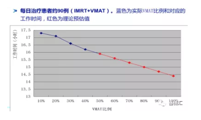 需要說(shuō)明的是,有些技術(shù)本身并不是為了加快治療速度而發(fā)展起來(lái)的,例如,大分割放療技術(shù),其發(fā)展的本質(zhì)是基于其生物效應(yīng)優(yōu)勢(shì)。但是我們不能否認(rèn),該技術(shù)的發(fā)展確實(shí)減少了定擺位的累計(jì)次數(shù)和時(shí)間,等于是減少了整個(gè)的治療時(shí)間,有利于在同樣多的時(shí)間里可以治療更多的患者。同樣,多采用VMAT技術(shù),和普通IMRT相比,也能減少工作時(shí)間。如下圖所示: