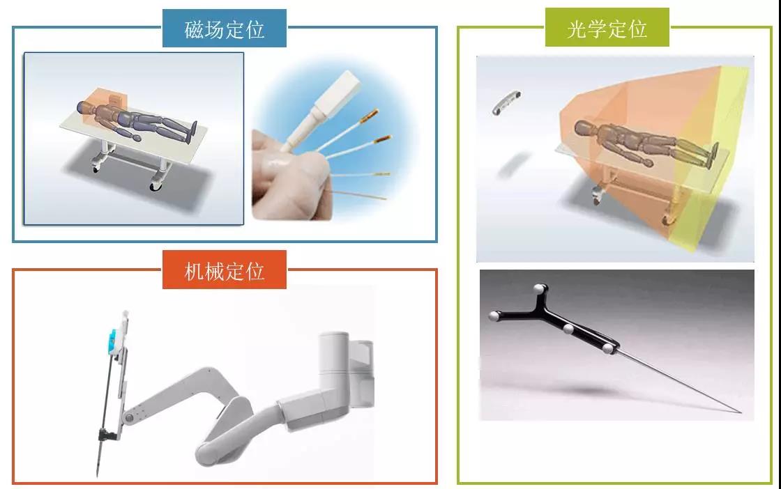 目前常見三種定位系統(tǒng) :1)磁場(chǎng)定位;2)光學(xué)定位;3)機(jī)械定位。這三種定位系統(tǒng)在定位精度上都能滿足目前手術(shù)導(dǎo)航系統(tǒng)的需求,但每種系統(tǒng)都有其局限性:磁場(chǎng)定位易受鐵磁性物體干擾,而且不能和MRI設(shè)備同時(shí)使用,精度約為1mm和0.5°;光學(xué)定位必須保證光路暢通,且所追蹤物體必須為剛性,其分別率可達(dá)到(<0.1mm);機(jī)械定位靈活性有限,設(shè)備所占體積較大。對(duì)于腹腔手術(shù)而言,例如肝臟等軟組織多位于人體較深部位,光學(xué)定位可能會(huì)受到一定的限制,通過腹腔鏡進(jìn)行機(jī)械定位是目前手術(shù)機(jī)器人的主流技術(shù)選擇。
