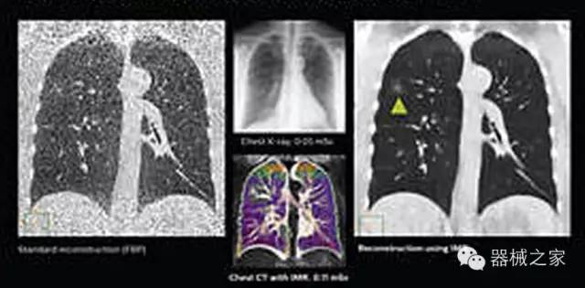 透過數字化影真芯片DAS系統、球面微平板探測器技術和濾線柵技術等硬件技術,整體提高探測器成像的能力,奠定低劑量條件下高清成像的基礎;