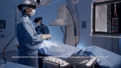 業(yè)內(nèi)人士認(rèn)為,這極可能是未來手術(shù)室的重要發(fā)展方向,這個概念讓我們可以看到真實(shí)世界與實(shí)時數(shù)據(jù)和3D醫(yī)學(xué)圖像疊加在一起,指導(dǎo)精準(zhǔn)治療成為可能。同時,通過語音識別、眼動追蹤和高級手勢來控制Azurion,能夠讓醫(yī)生的注意力更加集中在患者身上。